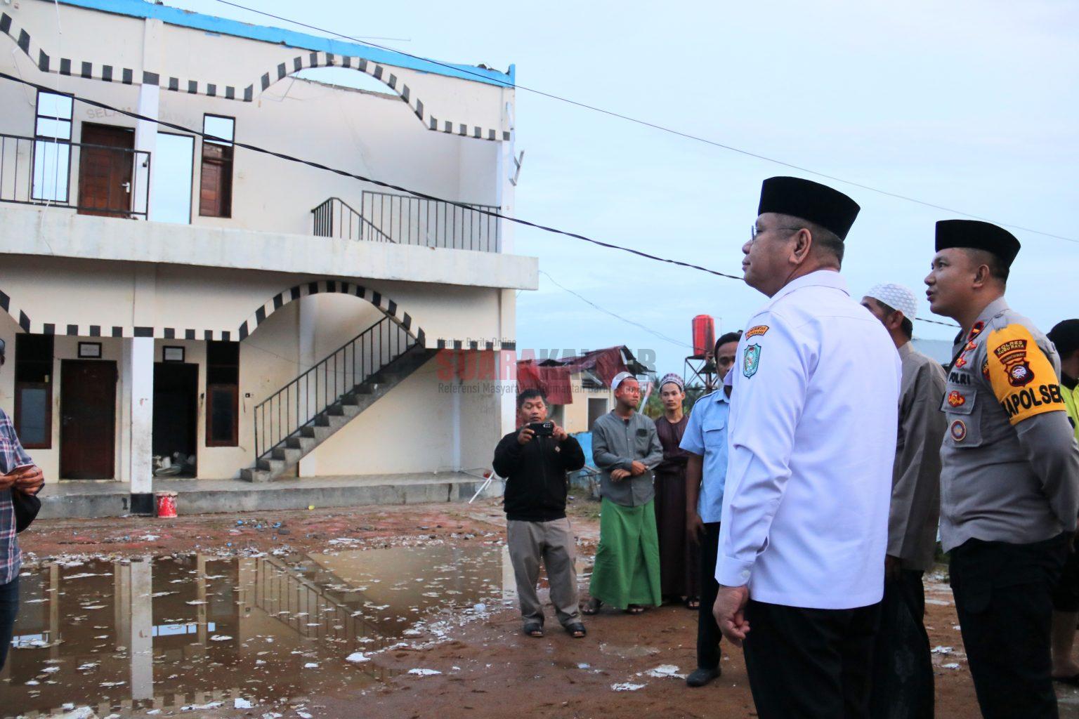 Suaraindo.id – Penjabat (Pj) Gubernur Kalimantan Barat Harisson melihat langsung kerusakan bangunan yang disebabkan angin puting beliung di Pondok Pesantren Ad-Dakwah Madinatul Qur’an Desa Pal IX, Kecamatan Sungai Kakap Kabupaten Kubu Raya, Rabu (18/10/2023).