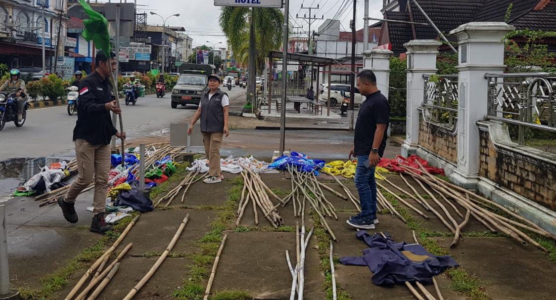 Suaraindo.id-Badan Pengawas Pemilu (Bawaslu) Kabupaten Sanggau dan Satuan Polisi Pamong Praja (Sat Pol PP), Dinas Perhubungan, TNI dan pihak kepolisian kembali menertibkan sejumlah alat peraga kampanye (APK) berjenis bendera partai di sejumlah lokasi di Sanggau, Selasa (16/1/2024).