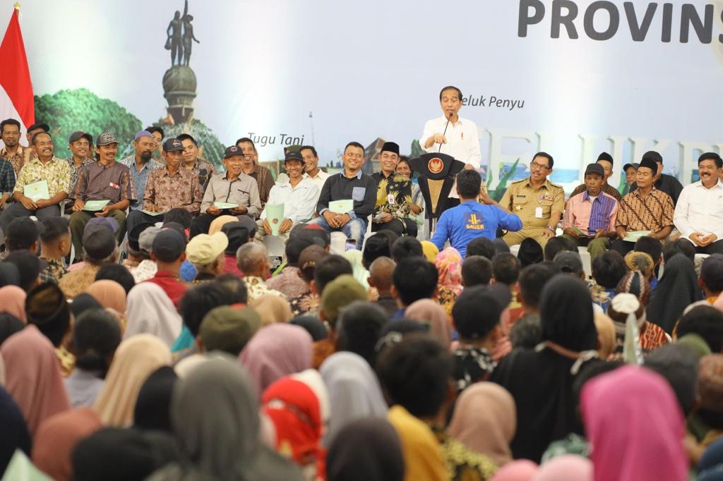 Suaraindo.id – Pada Selasa (02/01/2024), Presiden Republik Indonesia (RI), Joko Widodo didampingi Menteri Agraria dan Tata Ruang/Kepala Badan Pertanahan Nasional (ATR/BPN), Hadi Tjahjanto menyerahkan 878 sertipikat kepada masyarakat Desa Ujunggagak, Kecamatan Kampung Laut, Kabupaten Cilacap, Provinsi Jawa Tengah. Sertipikat yang diserahkan di GOR Premium Pertamina ini merupakan hasil dari program Redistribusi Tanah dengan bersumber dari tanah timbul yang mana baru pertama kalinya dilakukan di Indonesia.