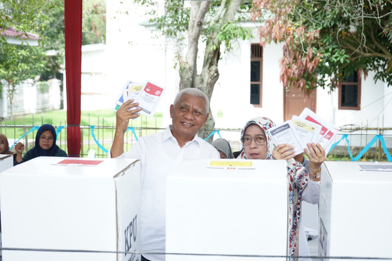 Suaraindo.id – Bupati Asahan dan Ketua TP PKK Kabupaten Asahan menggunakan hak suaranya di TPS 06 Kelurahan Mekar Baru Kecamatan Kota Kisaran Barat. Rabu (14/02/2023).