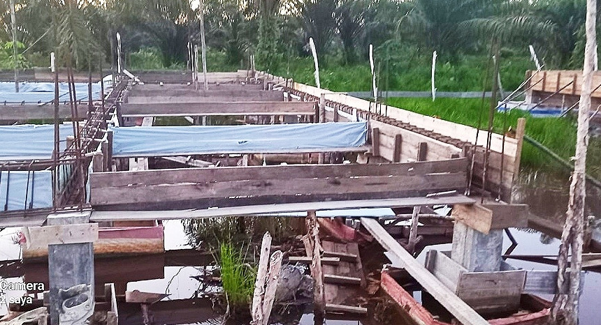 “Begitu kita gali, di dalamnya air semua, pada saat kita mau ngecor itukan kondisi banjir berminggu-minggu, kita sedot airnya pun tidak mampu, mau kita bendung airnya pun tidak bisa,” jelasnya.