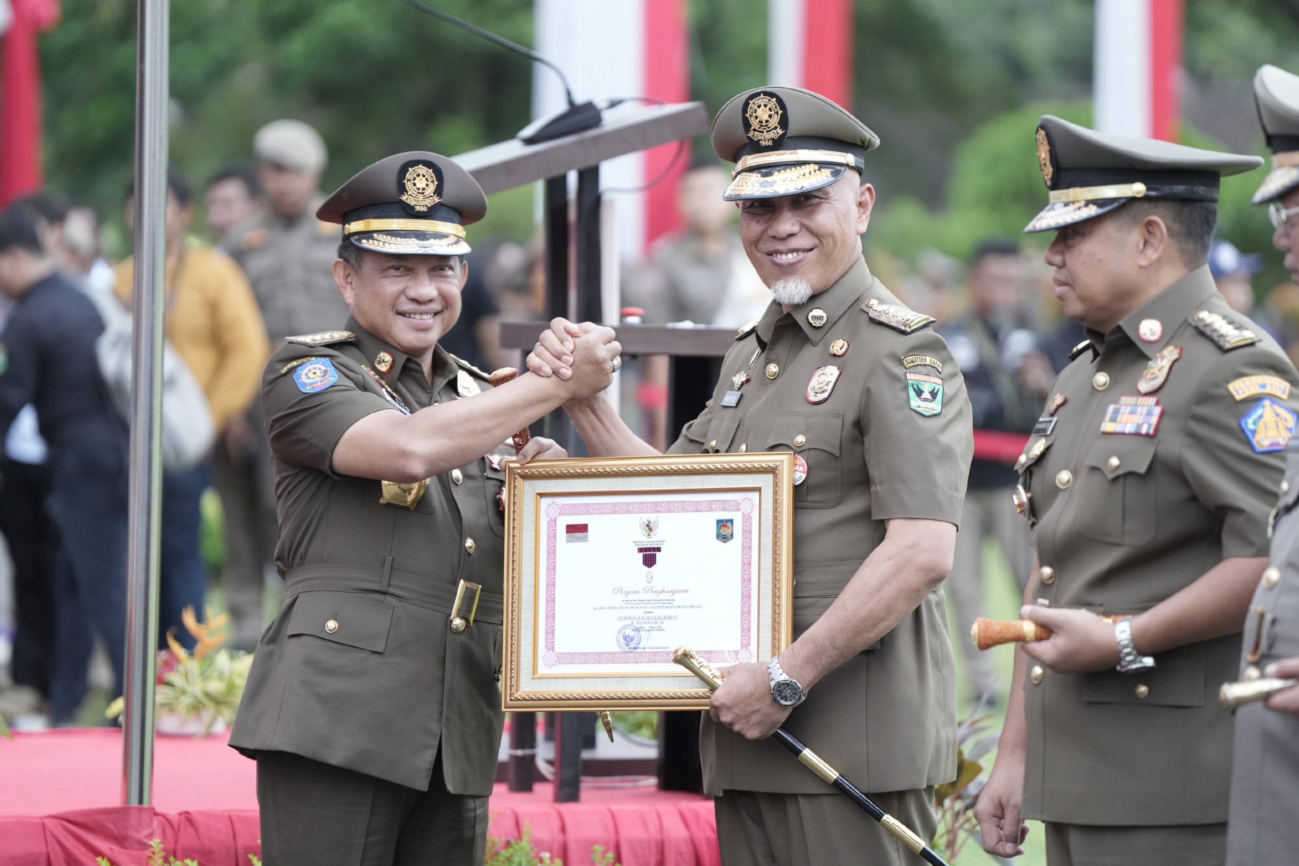 Dalam kesempatan itu, Mendagri juga menyerahkan Piagam Penghargaan Karya Bhakti Peduli Satpol PP kepada Gubernur Sumbar, Mahyeldi Ansharullah.