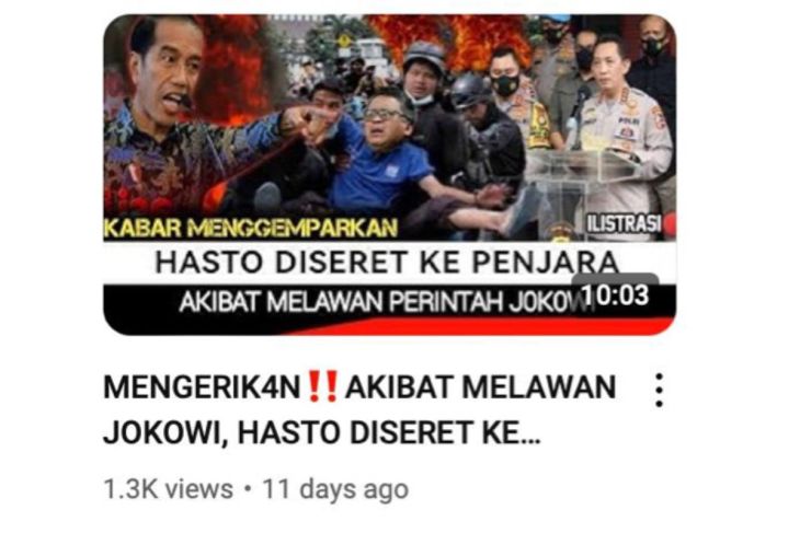 Dalam video tersebut juga membacakan narasi dari laman Kompas yang berjudul “Hasto Curiga Ada “Orderan” di Balik Pemanggilannya ke Polda Metro Jaya” dan “Dipanggil Ke Polda Metro Jaya karena Bicara di Media, Hasto PDI-P: Besok Saya Hadir”.