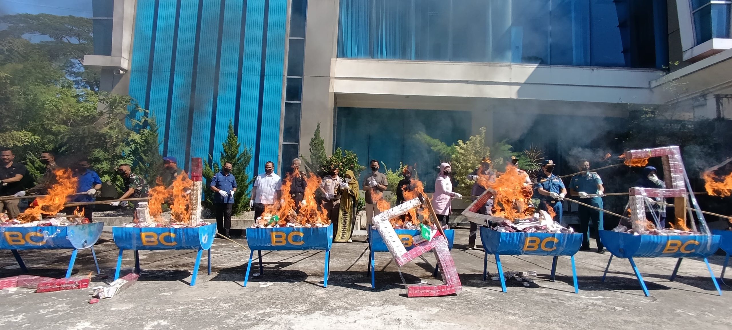 Pemusnahan barang – barang ilegal itu dilakukan dengan cara di bakar yang dipimpin oleh Kepala KPPBC tipe Madya Teluk Bayur Indra Sucahyo bersama stakeholder.