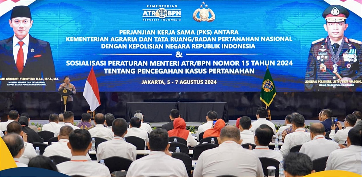 Hal ini ia sampaikan dalam sambutannya di momen penandatanganan Perjanjian Kerja Sama antara Kementerian ATR/BPN dan Polri serta Sosialisasi Peraturan Menteri ATR/Kepala BPN Nomor 15 Tahun 2024 tentang Pencegahan Kasus Pertanahan, di Kemayoran, Jakarta, Senin (05/08/2024).
