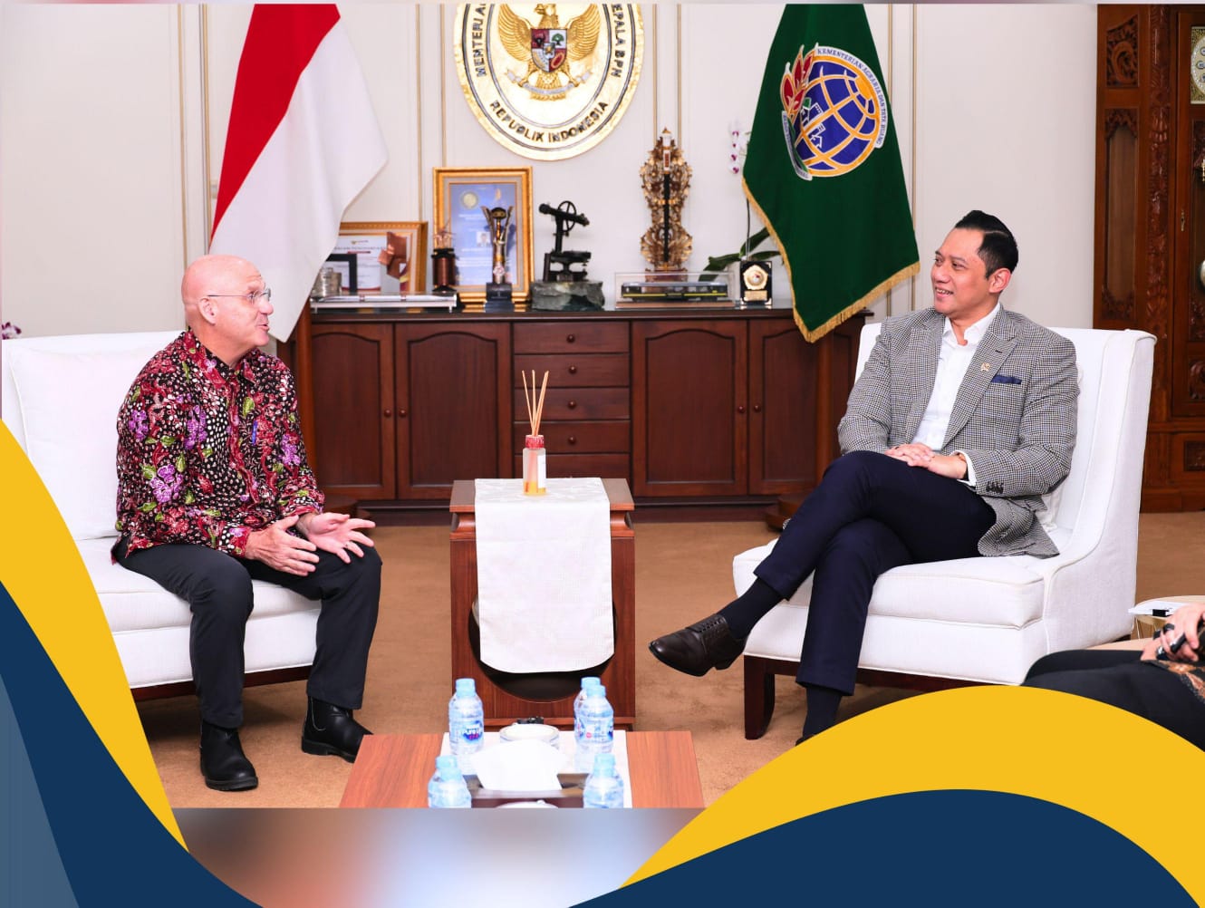 Suaraindo.id– Menteri Agraria dan Tata Ruang/Kepala Badan Pertanahan Nasional (ATR/BPN), Agus Harimurti Yudhoyono (AHY) melakukan pertemuan dengan Mission Director of United States Agency for International Development (USAID) Indonesia, Jeffery P. Cohen.