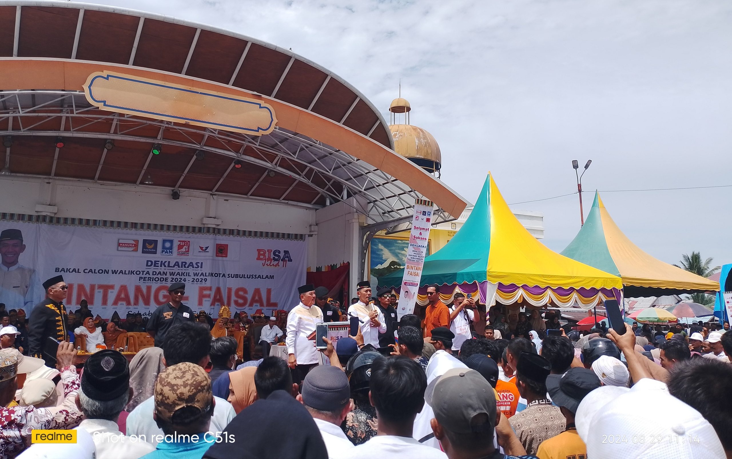 Sebelum mendaftar ke KIP, pasangan BISA melakukan deklarasi di Lapangan Beringin, Kecamatan Simpang Kiri, Kota Subulussalam, Kamis pagi, (29/8/2024).