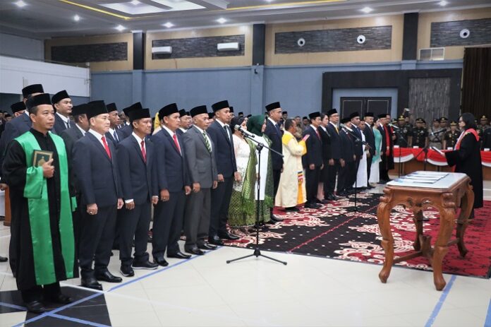Pengucapan sumpah/janji dipimpin Ketua Pengadilan Negeri Kota Singkawang, Cita Savitri dan disaksikan oleh Asisten II Sekretariat Daerah Provinsi Kalimantan Barat, Pj Walikota Singkawang dan jajaran Forkopimda serta seluruh tamu undangan.