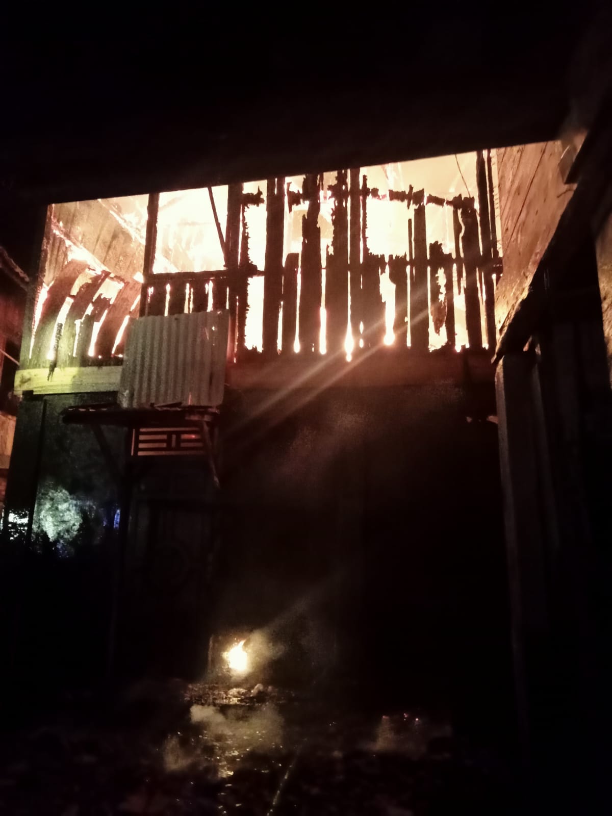 Dengan cepatnya api menyebar, rumah berukuran 7×5 meter tersebut, yang merupakan rumah panggung, habis dilalap si jago merah.