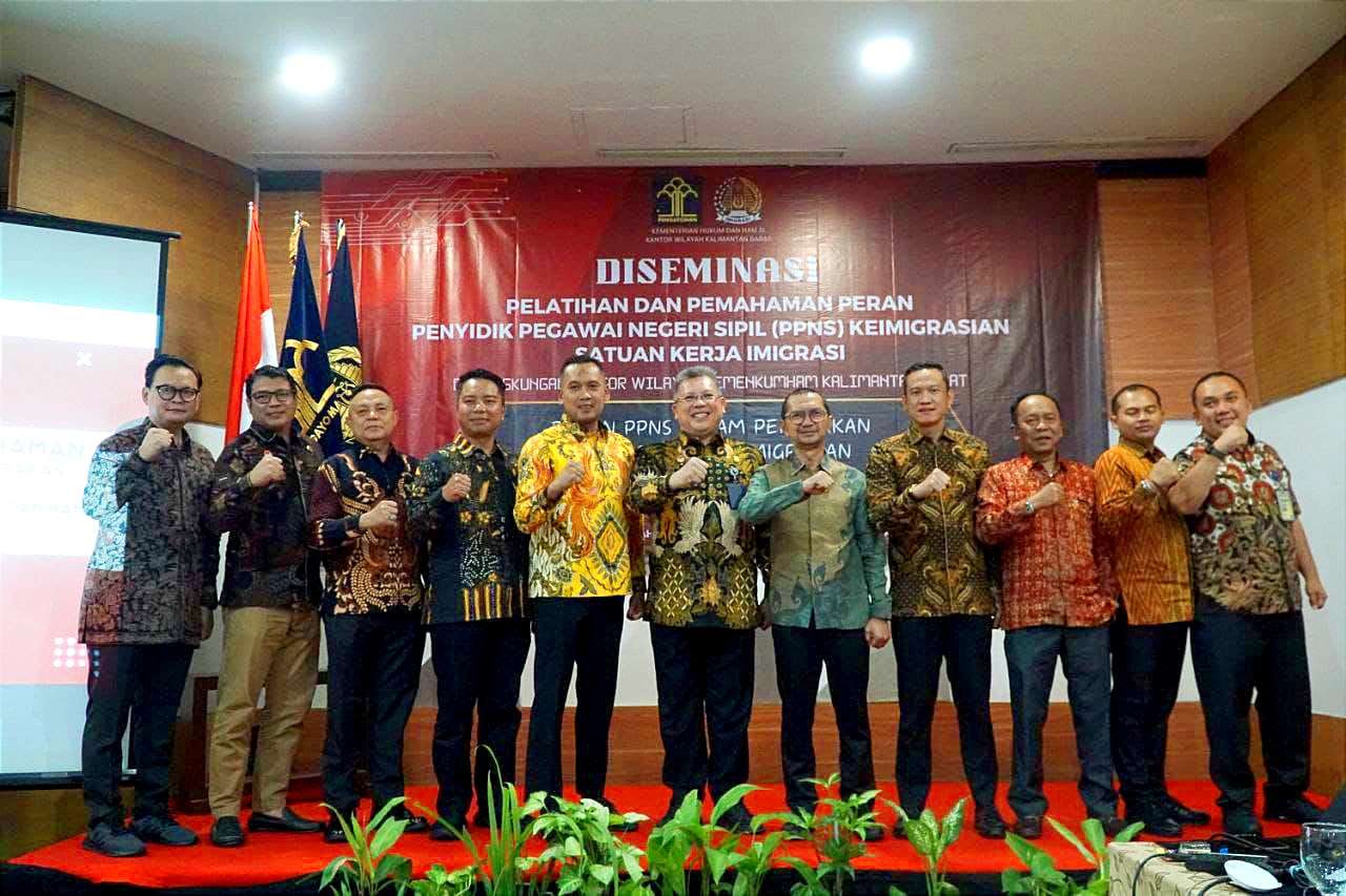 SuaraIndo.id – Guna memperkuat perangkat hukum dan kompetensi Penyidik Pegawai Negeri Sipil (PPNS) Keimigrasian, Kantor Wilayah (Kanwil) Kementerian Hukum dan HAM (Kemenkumham) Kalimantan Barat (Kalbar) menggelar Diseminasi Pelatihan dan Pemahaman Peran PPNS Keimigrasian.