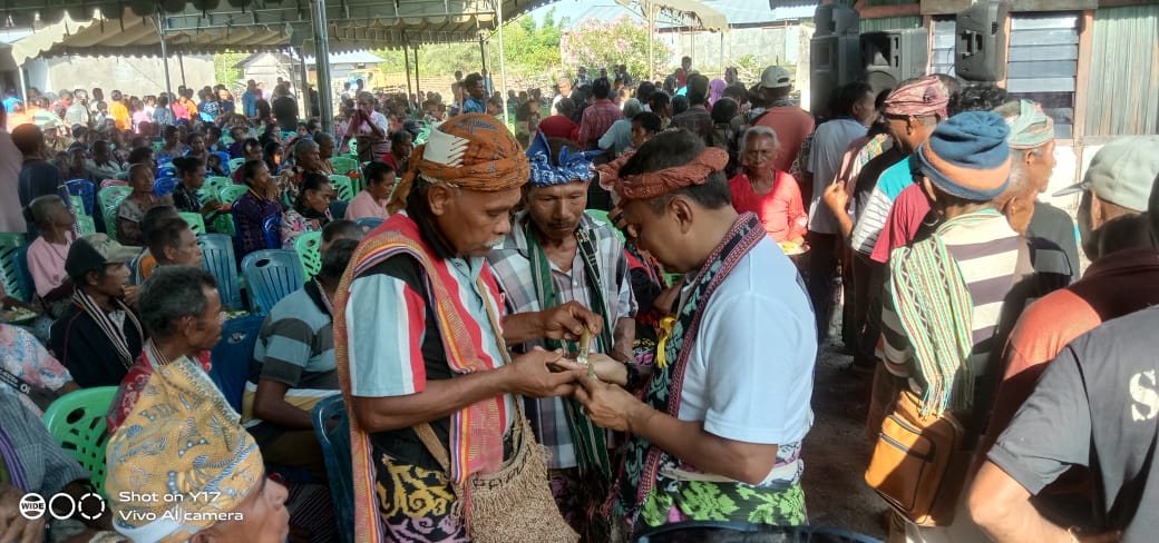 Tiba di lokasi lokasi pertemuan terbatas, Simon Petrus Kamlasi bersama rombongan kembali disambut dengan sapaan adat Natoni oleh para tetua di wilayah perbatasan Indonesia – Timor Leste tersebut.