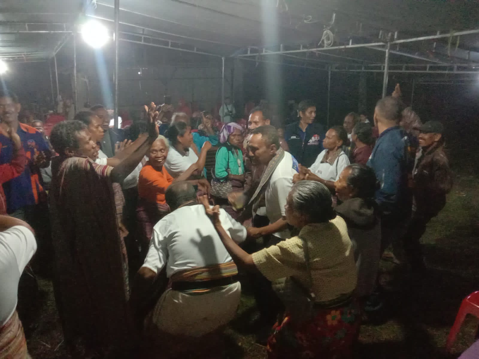 Ketika SPK tiba sekira pukul 19.30 WITA, warga spontan menyambut SPK dan rombongan dengan tarian sehingga SPK yang didampingi istrinya, Ester Meylani Siregar, Ketua Tim Pemenangan, Kristo Blasin, Politisi PKB Dan Hurek, dan beberapa politisi senior lainnya, langsung ikut menari bersama warga yang menyambutnya dengan penuh sukacita.
