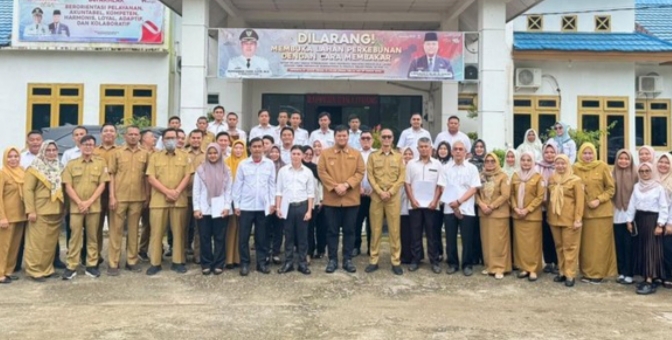 Erwin yang juga sebagai Plt Kepala Bappeda dan Litbang Banyuasin memberikan reward saat apel perdana 2025. Dia juga menekankan pentingnya kinerja pegawai.