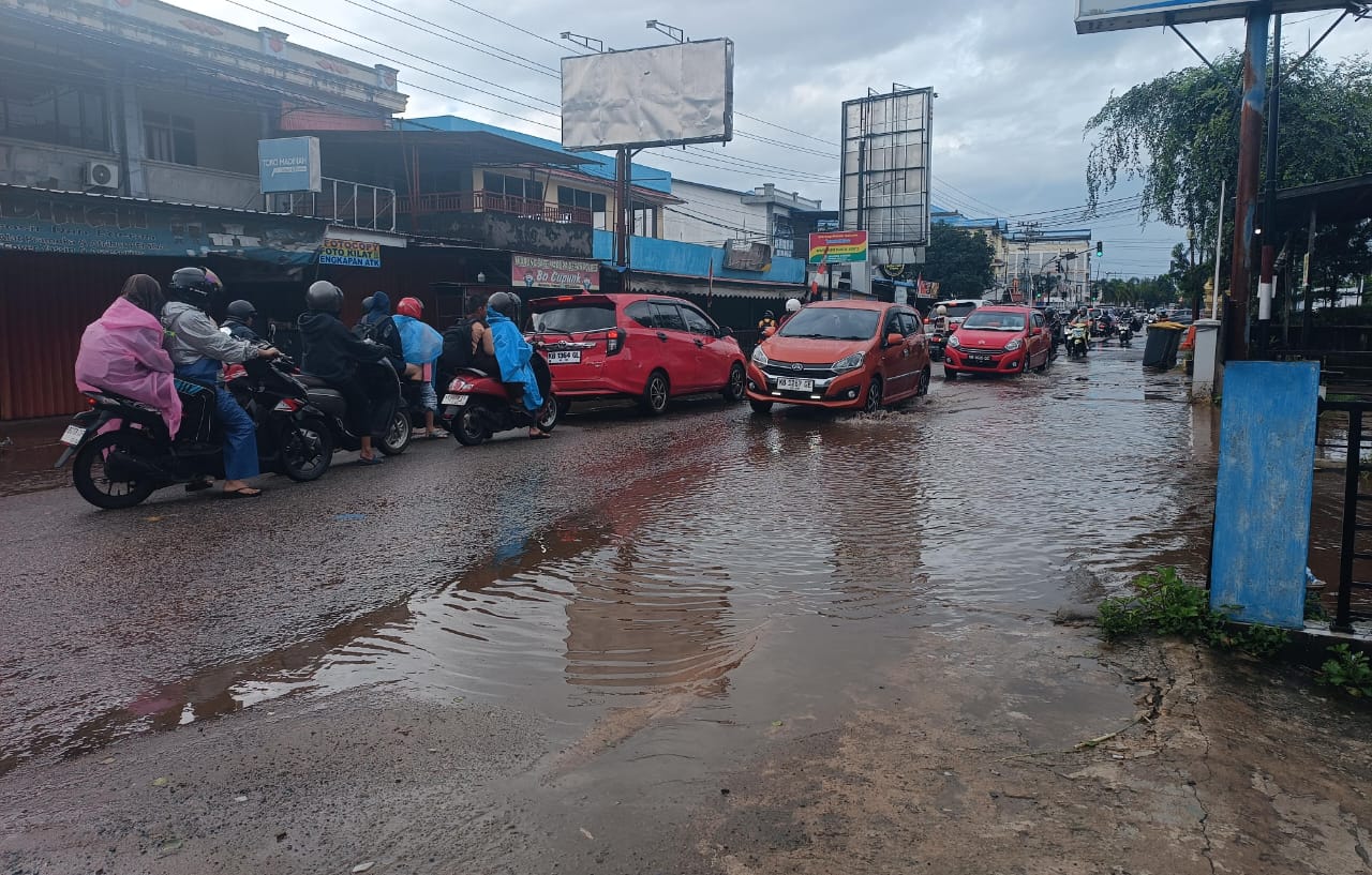 Suaraindo.id – Hujan deras yang mengguyur pusat kota pada Jumat (12/9/2025) pagi kembali menenggelamkan ruas Jalan Brigjen Katamso, Kelurahan Sukahaja, tepat di depan Polres Ketapang. Genangan mulai terlihat sekitar pukul 07.30 WIB, membuat arus kendaraan tersendat dan menimbulkan keresahan warga.
