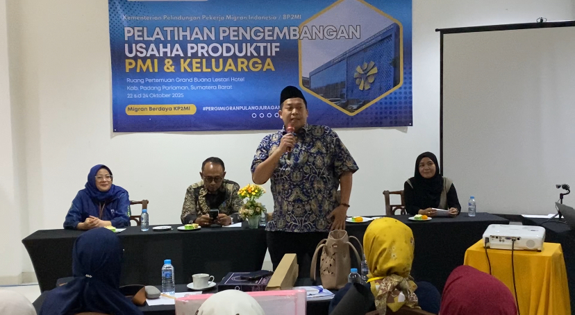 Suaraindo.id- Dalam upaya meningkatkan kemandirian ekonomi Purna Pekerja Migran Indonesia (PMI) dan keluarganya, Balai Pelayanan Perlindungan Pekerja Migran Indonesia (BP3MI) Sumatera Barat menggelar Pelatihan Pengembangan Usaha Produktif PMI dan Keluarga di Hotel Grand Buana Lestari, Padang Pariaman, Dari tanggal 22 Sampai 24 Oktober 2025.