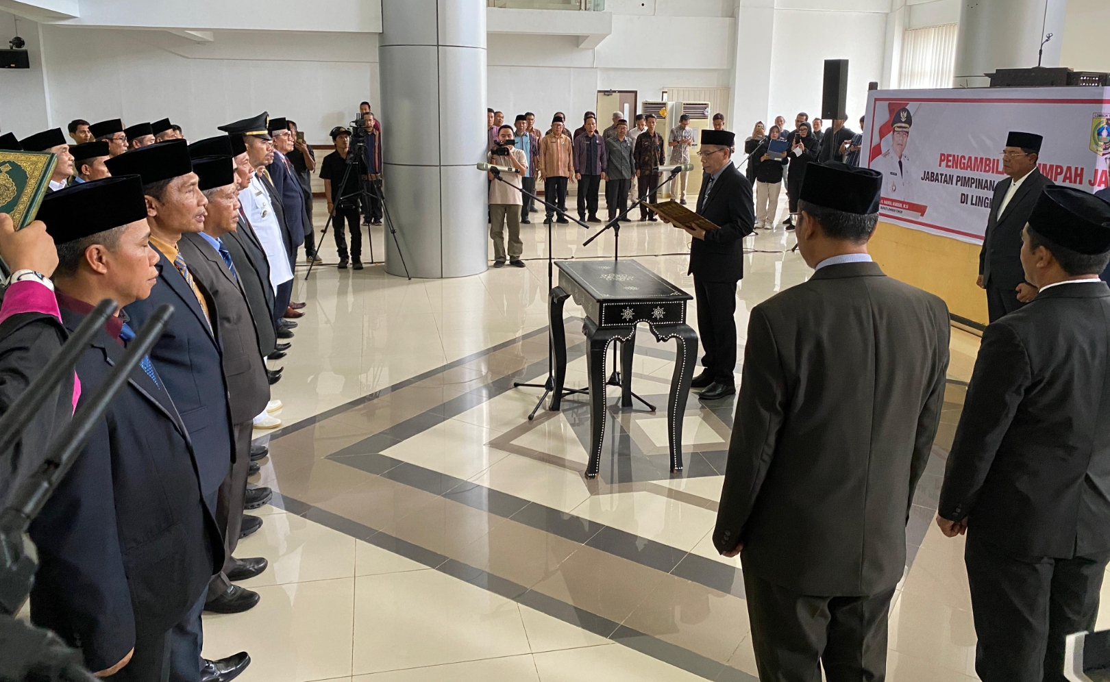 Sebanyak 39 pejabat resmi dilantik, dalam upacara pengambilan sumpah jabatan yang berlangsung di Ballroom Kantor Bupati Lombok Timur, Kamis 23 Oktober 2025.