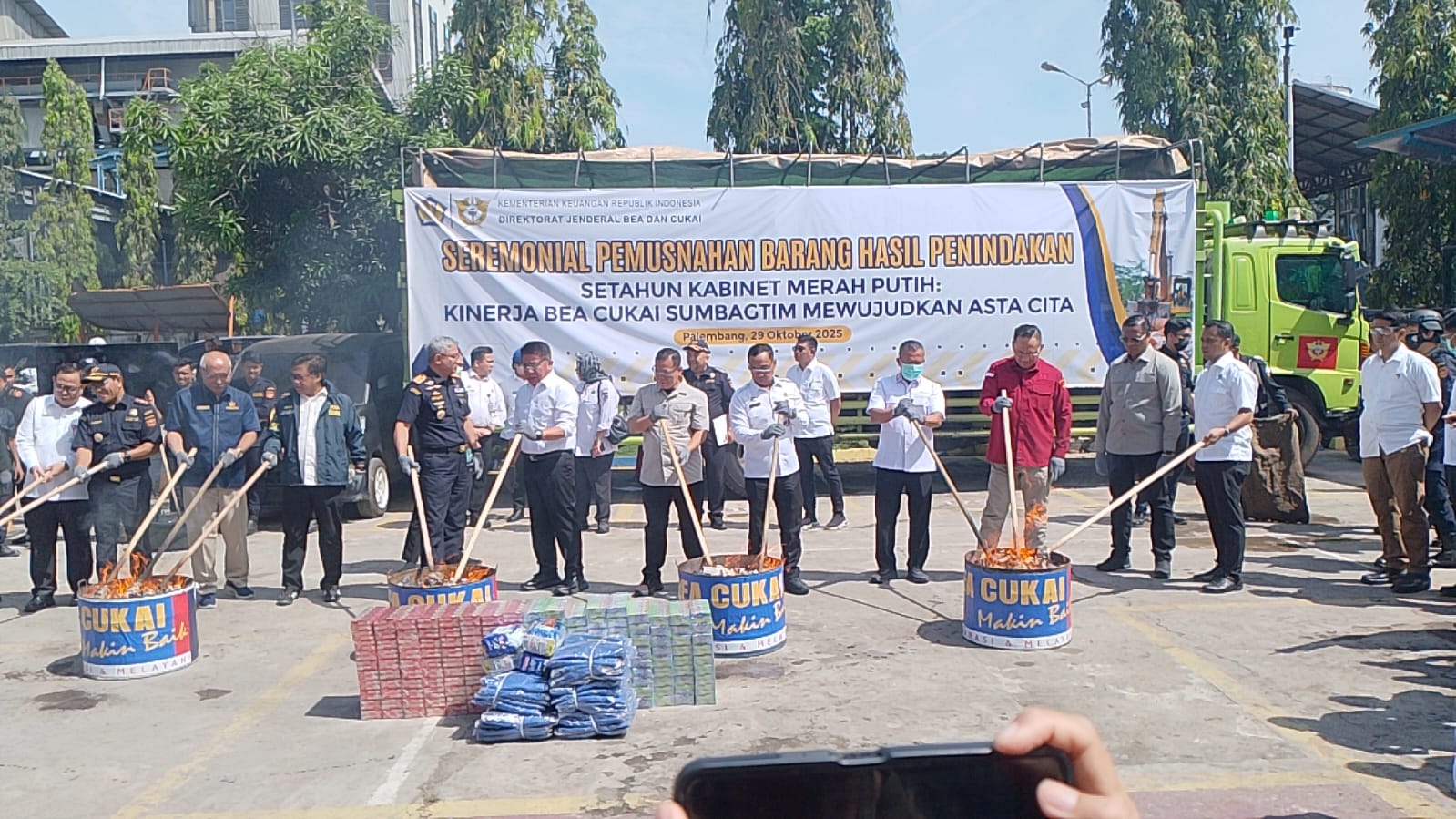 Suasana seremonial pemusnahan barang hasil penindakan oleh Bea Cukai Sumbagtim (SuaraIndo.id/Dok)