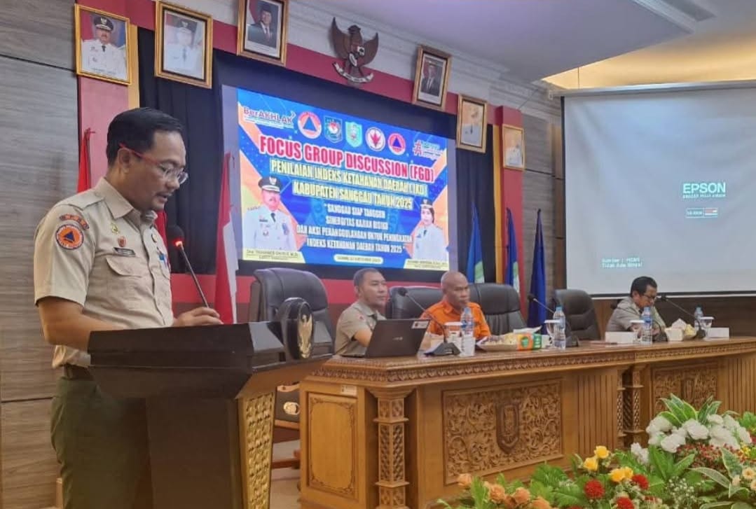 dalam laporannya mengatakan bahwa FGD ini dilaksanakan sebagai bagian dari proses penilaian kapasitas daerah yang dilakukan secara nasional berdasarkan 71 indikator dan 7 parameter IKD. Kegiatan ini juga menjadi wadah untuk mendiseminasikan Dokumen Kajian Risiko Bencana Kabupaten Sanggau Tahun 2024–2028 sebagai living document yang dapat dijadikan acuan lintas sektor dalam perencanaan pembangunan daerah.
