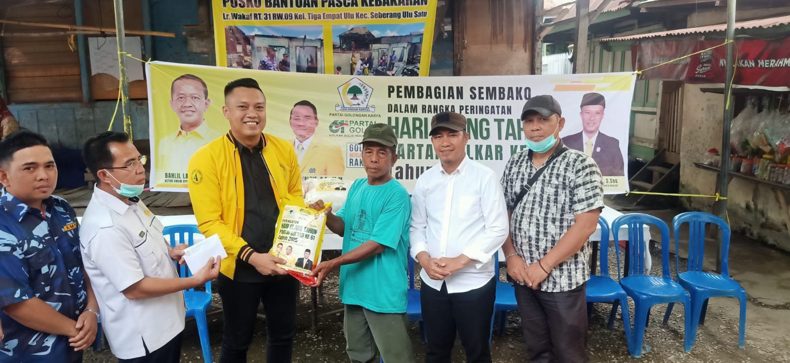 “Kami menyampaikan terima kasih atas kepedulian Partai Golkar. Bantuan ini sangat bermanfaat karena beras adalah kebutuhan pokok warga yang terkena musibah,” kata Rama.