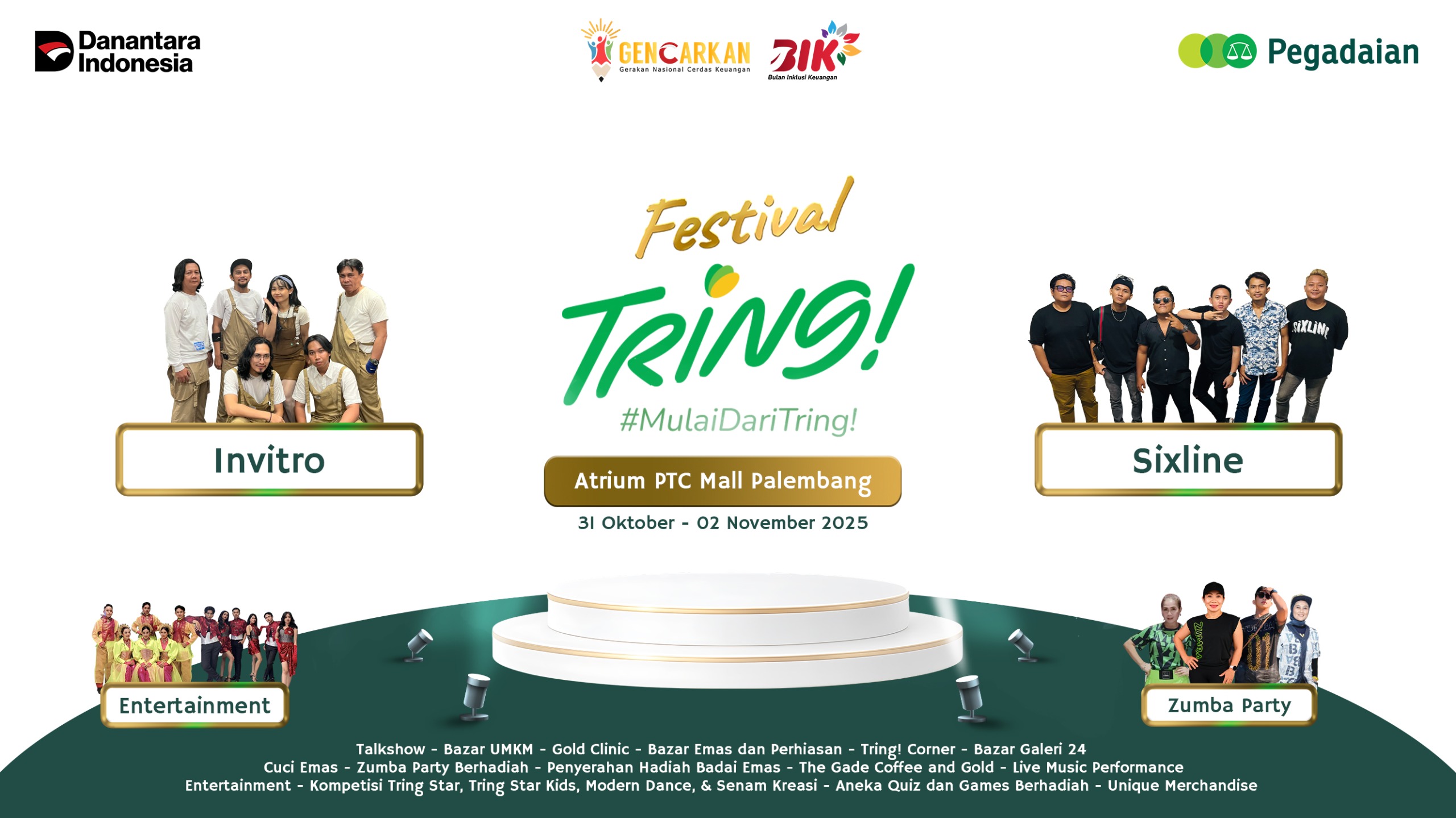 SuaraIndo.id — PT Pegadaian siap menyapa masyarakat Sumatera Selatan melalui Festival Tring! 2025, yang akan digelar di Palembang Trade Center (PTC) Mall pada 31 Oktober hingga 2 November 2025.