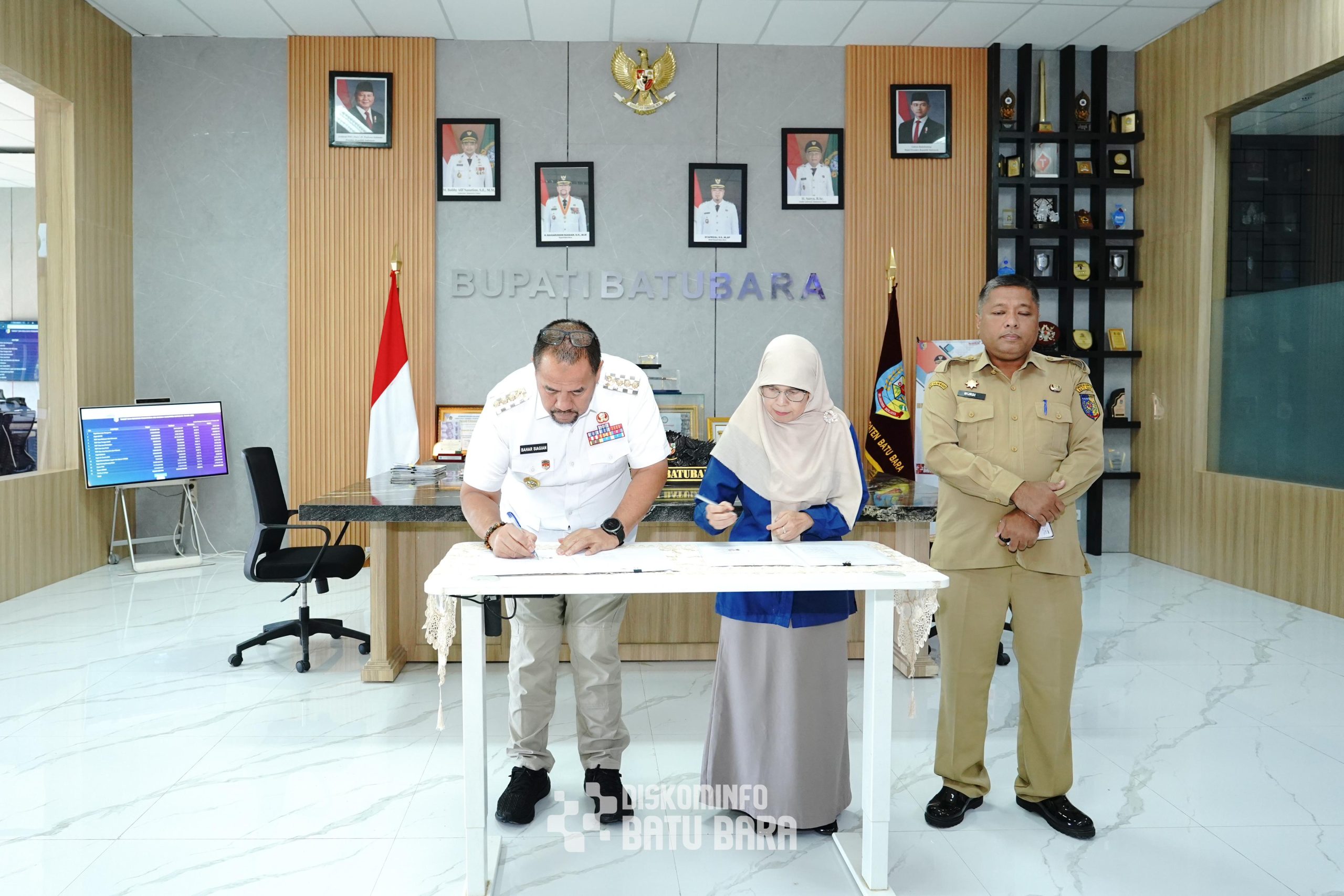 Penandatanganan Nota Kesepakatan dilakukan langsung oleh Bupati Batu Bara dan Kepala BPS Kabupaten Batu Bara, disaksikan oleh sejumlah pejabat terkait.