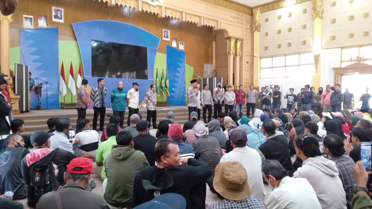 Suaraindo.id – Ratusan warga Kecamatan Jawai melakukan aksi unjuk rasa di halaman Kantor Bupati Sambas, Kamis (30/10/2025). Massa yang datang menggunakan sekitar 14 unit mobil dan sejumlah sepeda motor itu menuntut agar kepala desa mereka segera diberhentikan dari jabatannya.
