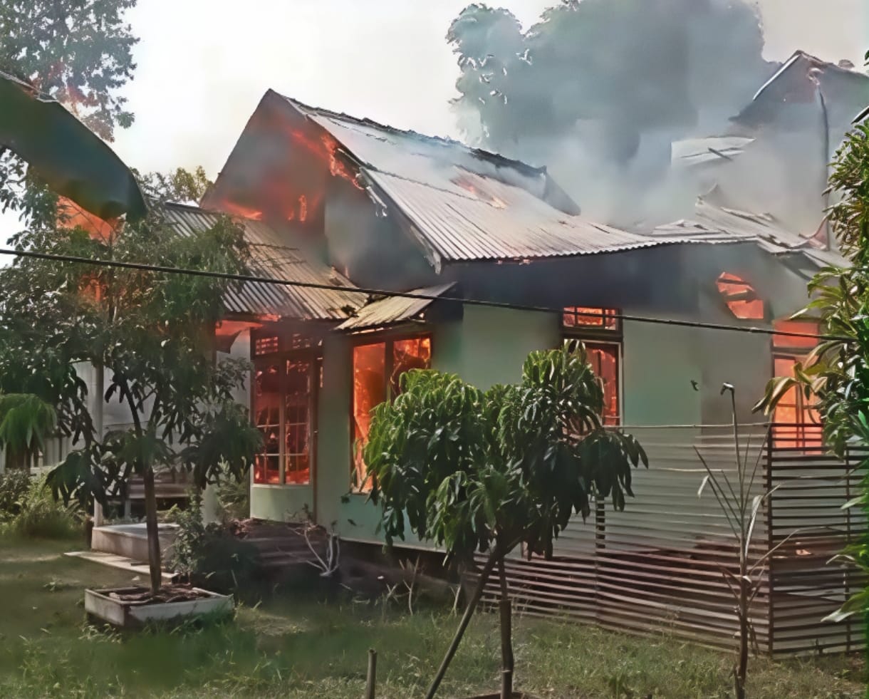 Suaraindo.id – Kobaran api membumbung tinggi dari sebuah rumah di Jalan Rahadi Ismail, Kelurahan Tuan-tuan, Kecamatan Benua Kayong, Kabupaten Ketapang, Jumat (24/10/2025) pagi. Meski tidak menimbulkan korban jiwa, hampir seluruh bagian rumah tersebut rata dengan tanah akibat dilalap si jago merah.