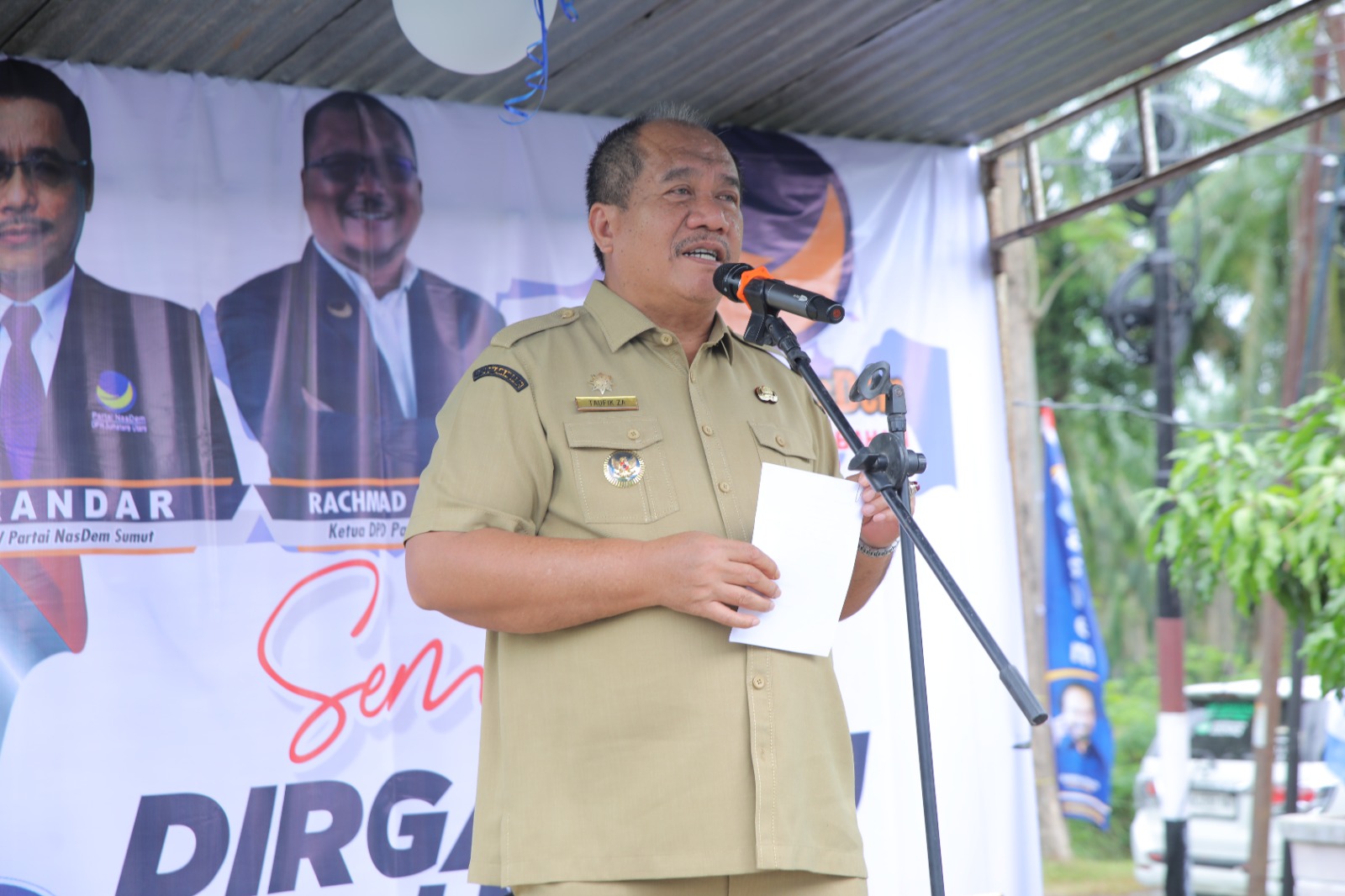 Dalam sambutannya, Ketua DPD Partai Nasdem Kabupaten Asahan, Rachmad Affandi, S.E., menyampaikan terima kasih atas kehadiran Bupati dan seluruh undangan. Ia menegaskan komitmen Nasdem untuk terus berkontribusi bagi masyarakat melalui kegiatan sosial seperti donor darah, kunjungan ke panti jompo, dan pembagian sembako. “Semangat restorasi yang kami bawa bukan hanya jargon, tapi wujud nyata kepedulian untuk membantu pemerintah daerah mewujudkan kesejahteraan masyarakat,” ujarnya.