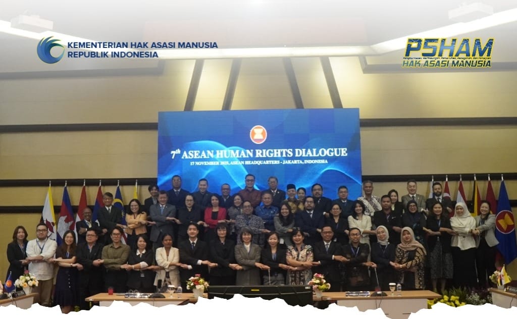Suaraindo.id – Wakil Menteri Hak Asasi Manusia (Wamen HAM) Mugiyanto memimpin Delegasi Indonesia dalam ASEAN Human Rights Dialogue (AHRD) ke-7 yang digelar di Sekretariat ASEAN,pertemuan ini dihadiri seluruh negara anggota ASEAN serta perwakilan lembaga HAM, masyarakat sipil, dan akademisi kawasan.ASEAN.senin 17/11/2025