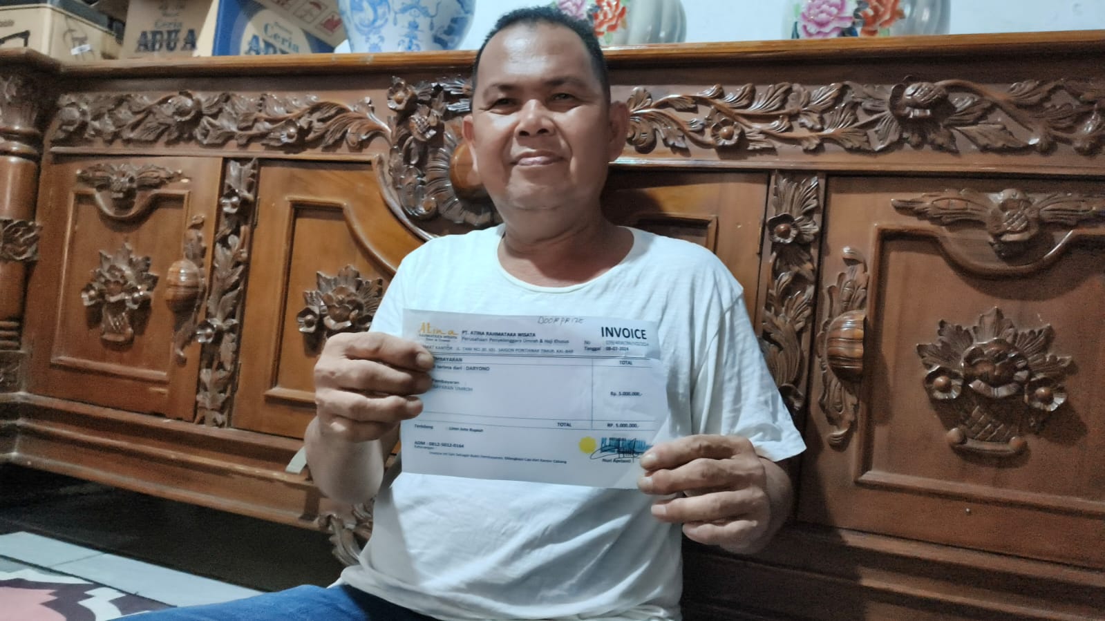 Daryono, seorang buruh bongkar muat barang di kawasan Pontianak Timur, menceritakan kisah pilunya kepada Suarakalbar.co.id. Ia mengaku terjebak dalam program umrah yang dijalankan oleh koperasi tersebut setelah diyakinkan oleh seorang Team Leader (TL) bernama Nia.