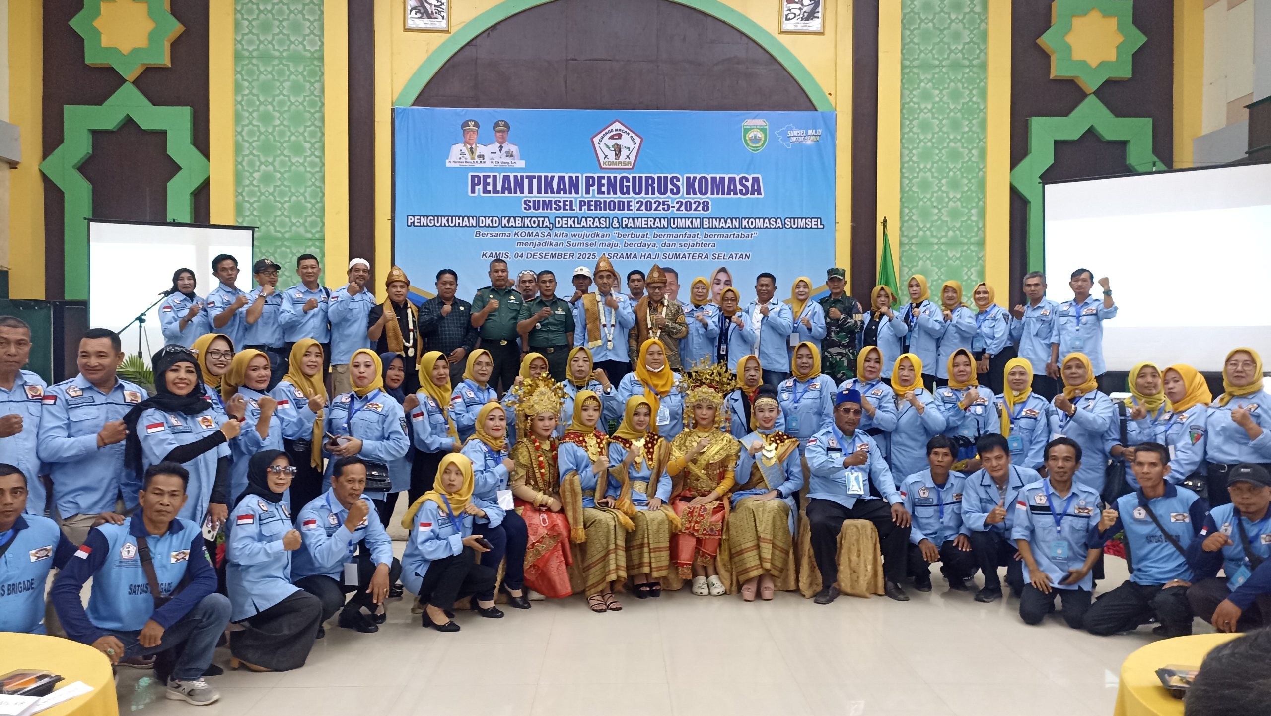 SuaraIndo.id – Kepengurusan Dewan Komando Wilayah (DKW) Macan Asia (KOMASA) Provinsi Sumatera Selatan masa bakti 2025–2028 secara resmi dilantik oleh Ketua Umum Komasa Pusat, H. Khairul Chalid, SE, di Aula Asrama Haji Palembang, Kamis (4/12/2025).