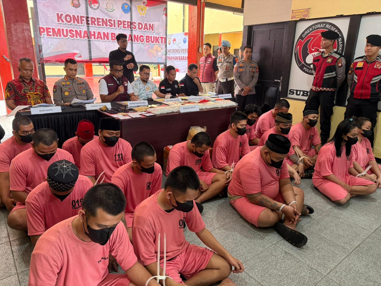 Sebagai bentuk komitmen penegakan hukum, Polda Kalbar juga telah melakukan pemusnahan barang bukti narkotika. Untuk jenis sabu, sebanyak 5.209 gram telah dimusnahkan, sementara 2.727,66 gram lainnya masih dalam proses hukum.