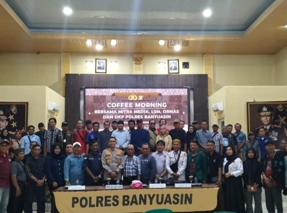 SuaraIndo.id – Kapolres Banyuasin AKBP Risnan Aldino, S.IK., M.Si, Kasat Intelkam AKP Novidilhan, Kasat Reskrim AKP Muhammad Ilham, Plt Kasi Humas Iptu Abu Bakar, S.H., serta jajaran pejabat di lingkungan Polres Banyuasin. Mlengundang para insan pers, organisasi kemasyarakatan (Ormas), organisasi kepemudaan (OKP), lembaga swadaya masyarakat (LSM) yang ada di Kabupaten Banyuasin.