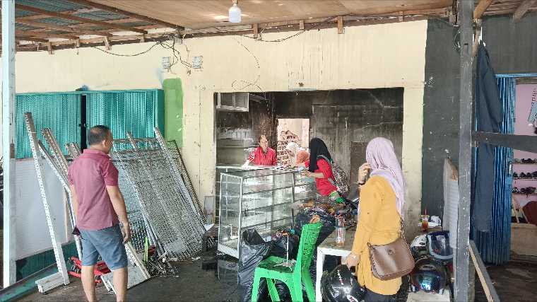 “Kios Anugerah Makmur mengalami kerusakan cukup berat karena api pertama kali muncul dari bagian atap kios tersebut,” jelasnya.