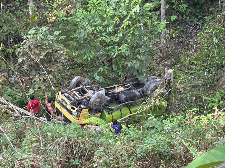 “Akibat kerusakan tersebut, pengemudi diduga tidak dapat mengendalikan kendaraan. Truk kemudian melaju lurus, keluar dari badan jalan, hingga akhirnya terjun ke jurang dan terguling,” jelasnya.