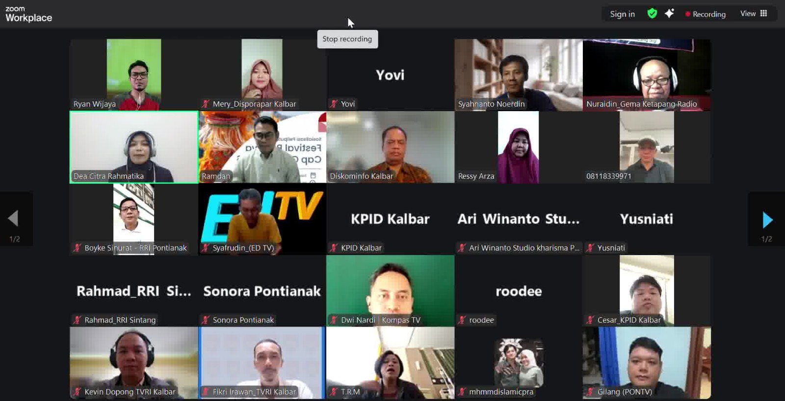 Kegiatan yang berlangsung secara daring ini diikuti Lembaga Penyiaran Publik dan Lembaga Penyiaran Swasta se-Kalimantan Barat, dengan menghadirkan Jurnalis Senior, Syahnanto Noerdin, sebagai narasumber.