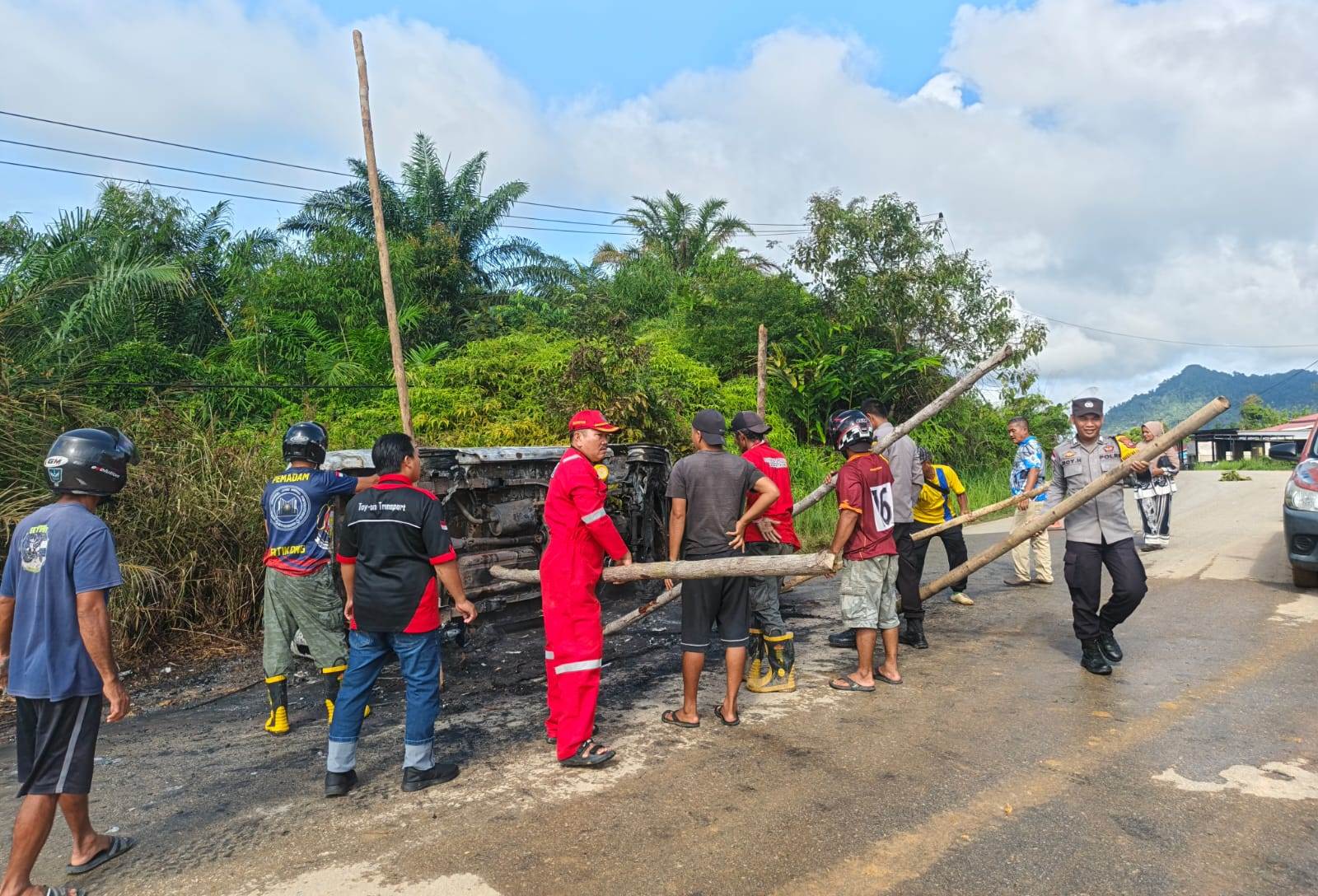 Tidak ada korban jiwa dalam peristiwa tersebut, namun kendaraan mengalami kerusakan berat akibat terbakar hampir seluruhnya.