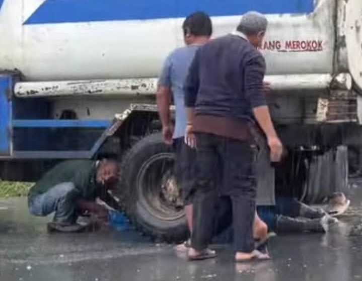 Suaraindo.id – Kecelakaan lalu lintas terjadi di Jalan H. Said, Kecamatan Tebas, Kabupaten Sambas, Selasa (4/2/2026) sekitar pukul 11.50 WIB. Sebuah truk bermuatan minyak terlibat tabrakan dengan sepeda motor hingga menyebabkan pengendara motor terjatuh dan masuk ke kolong truk.