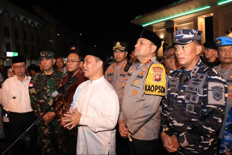 Peninjauan dilaksanakan pada malam takbiran di Pos Pengamanan Idul Fitri yang berlokasi di halaman Masjid Raya Mujahidin, Jumat malam (20/3/2026). Kegiatan ini bertujuan memastikan kondisi Kamtibmas tetap kondusif, sekaligus menjamin kelancaran arus mudik dan kekhusyukan masyarakat dalam merayakan malam kemenangan.