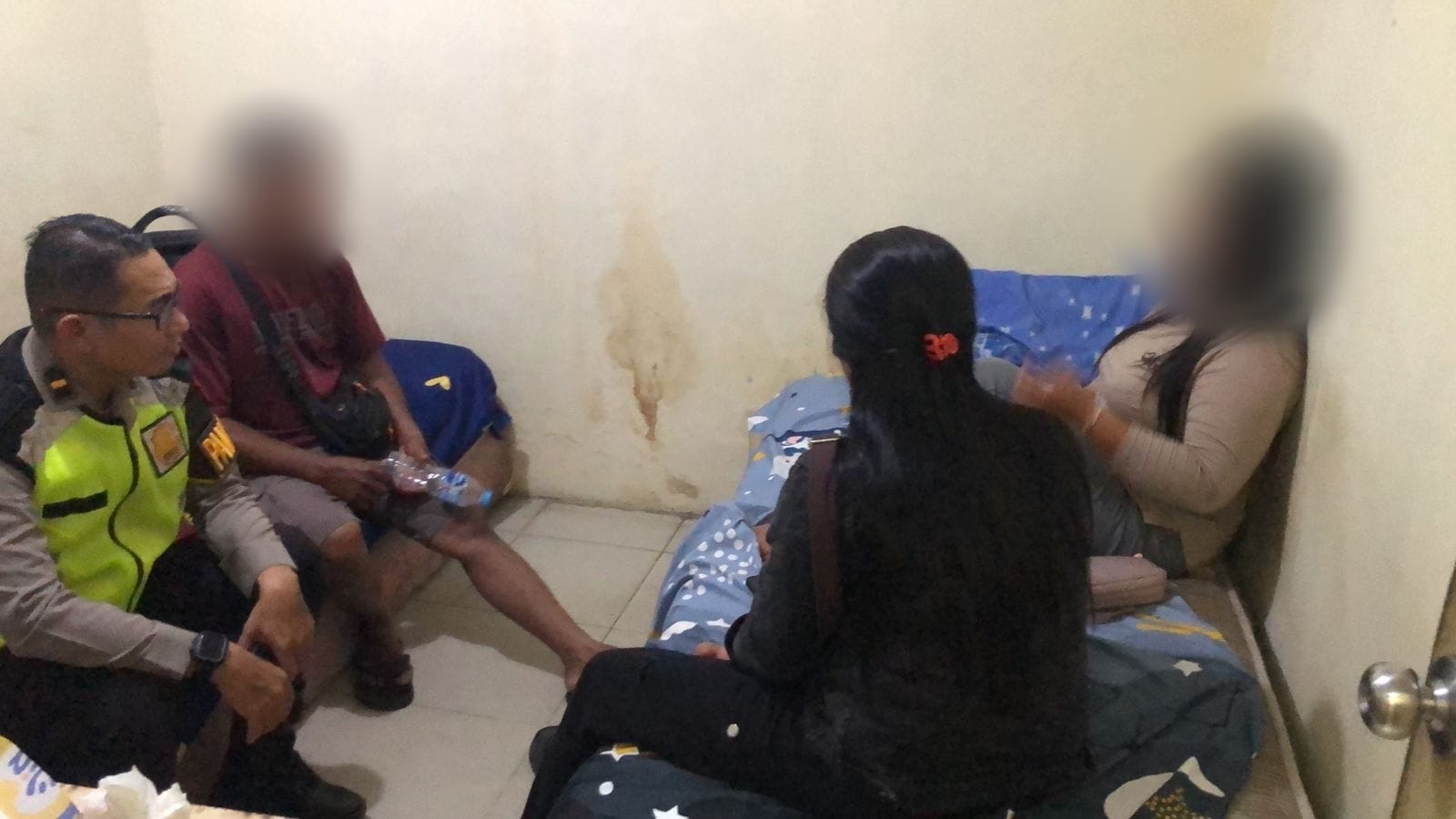 Berbekal informasi tersebut, Pamapta II bersama anggota Regu 2 SPKT melakukan pencarian dengan menelusuri sejumlah tempat penginapan di kawasan tersebut. Petugas mendatangi beberapa lokasi, di antaranya Kost Bela, Kost Manggis, hingga Penginapan Lintas Batas yang berada di kawasan Pasar Bengkayang, Jalan Jerendeng.