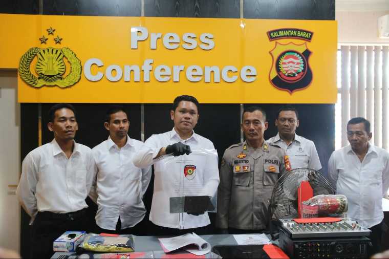 Konferensi pers ini dihadiri oleh Kapolres Singkawang yang diwakili Kasat Reskrim, Kasi Humas, para penyidik, serta awak media.
