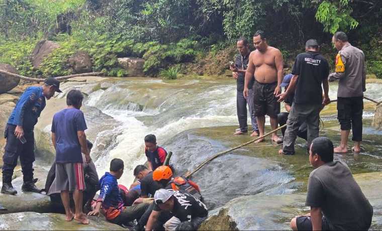 Namun nahas, korban diduga terpeleset dan langsung terseret arus hingga masuk ke dalam rongga di antara bebatuan. Dua orang teman korban sempat berupaya memberikan pertolongan, namun tidak berhasil. Mereka kemudian meminta bantuan warga sekitar.