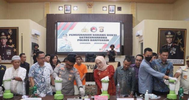 Polres Banyuasin Ungkap 26 Kasus dan Musnahkan Barang Bukti Narkotika dalam Press Release