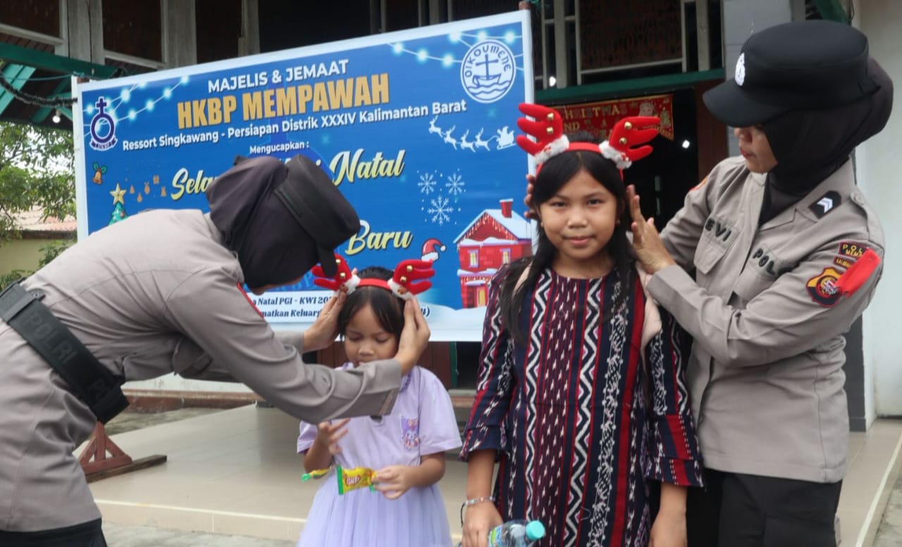 Polwan Polres Mempawah Bagikan Pernak-Pernik Natal, Wujud Kasih Polri Jelang Natal 2025